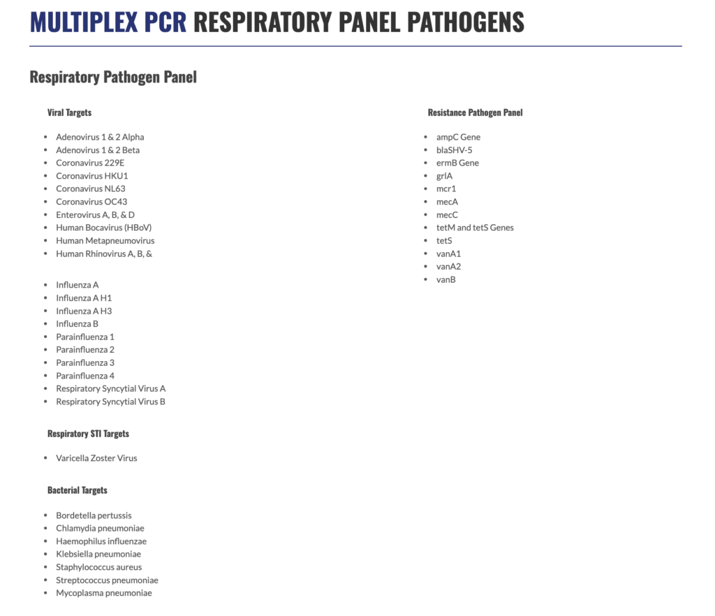FDA-cleared respiratory panel provides an overall sensitivity of 95% and specificity of 99%. Rapid and accurate diagnostic testing for respiratory pathogens help identify which patients to isolate and determine antibiotic or antiviral therapy.